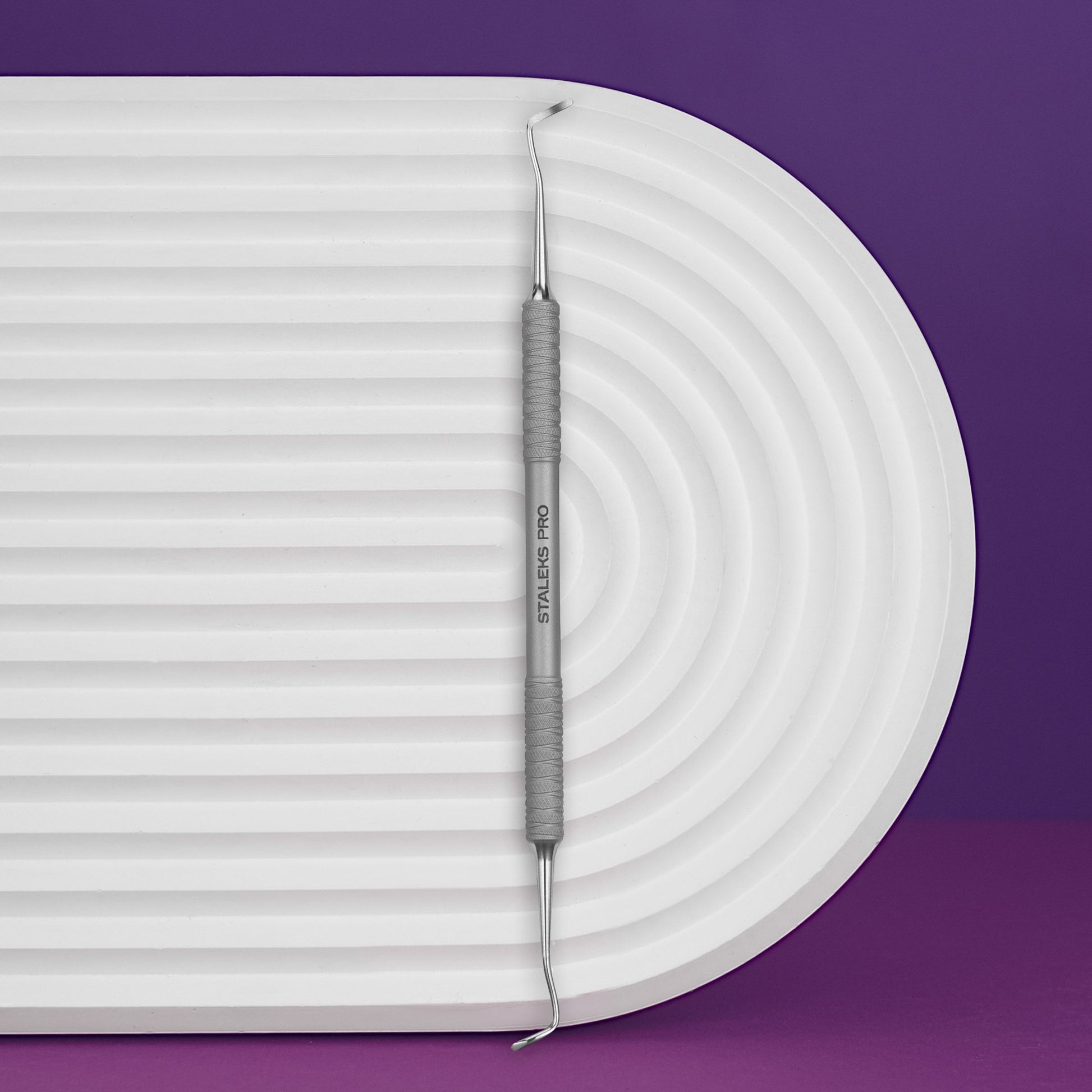 Chiureta Expert PE-20/2 este un instrument dublu, format din 2 capete de sens opus. Este destinat pentru îndepărtarea parțială a calusurilor uscate și pentru lucrul cu unghiile încarnate. Curba anatomică a chiuretei urmează forma plăcii unghiei. Manerul are o formă ergonomică specială, care își remarcă utilitatea în timpul uzului. Suprafața mată a mânerului este plăcută la atingere. Instrumentul este fabricat exclusiv din oțel inoxidabil 08X18H10 (AISI 304).