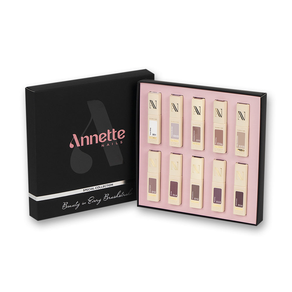 Ojele semipermanente AnnetteNails au o textură cremoasă și conțin microparticule, datorită cărora se nivelează ușor, fără scurgeri sau uniformități pe laterale sau vârf. Ojele se pot aplica fie peste baza rubber (sistemul soak off), fie peste materialele dure precum (gel, acrygel/polygel).