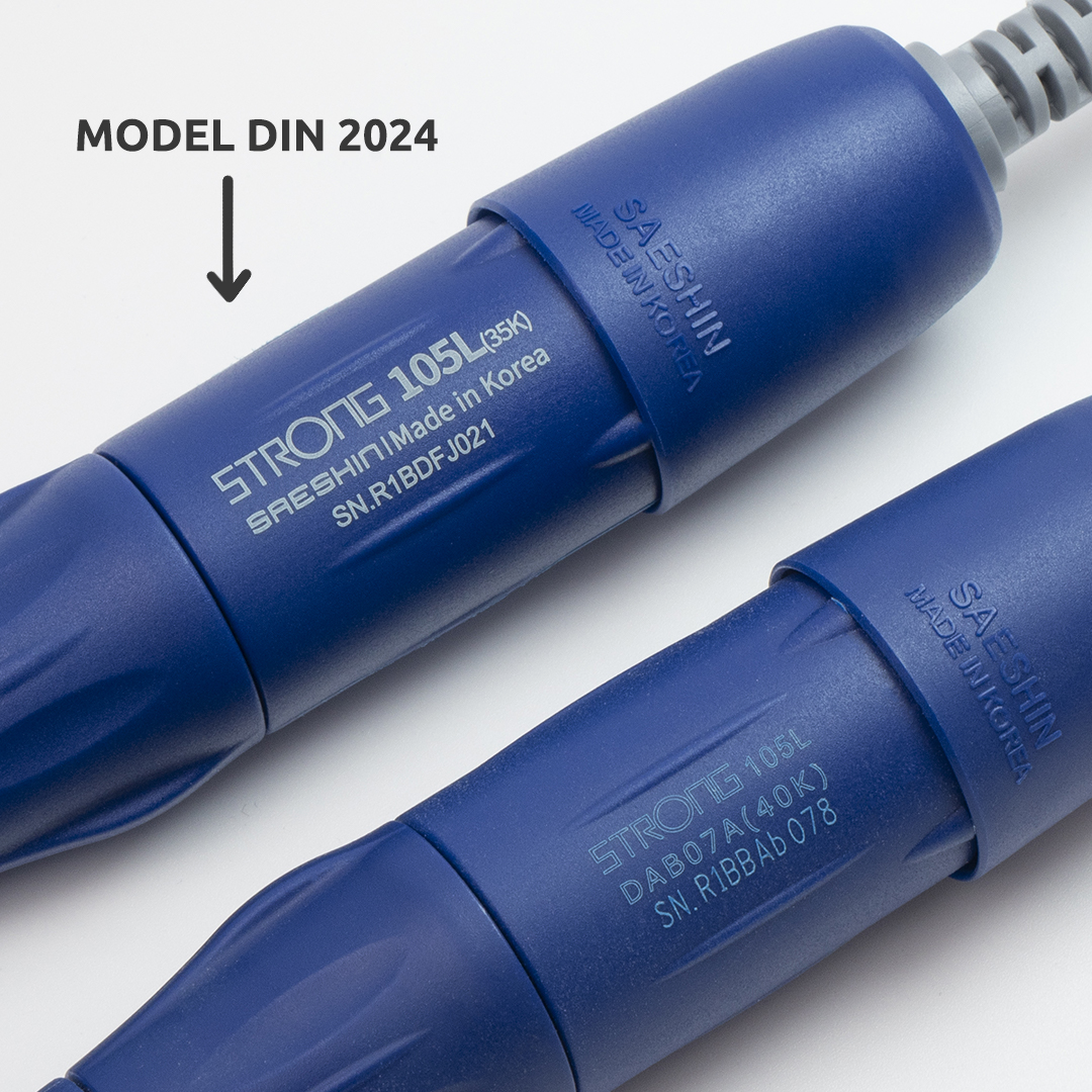 Freza de manichiură Saeshin Strong 210/105l este una dintre cele mai bune freze disponibile pe piață, fiind recunoscută pentru performanța și calitatea înaltă a acesteia. În procesul de producție al frezei, fiecare etapă este verificată cu atenție, ceea ce o face un produs de încredere! Puterea de 64 W și cuplul de 3 n/cm asigură o funcționare de durată în timp, răspunzând regimului solicitant de lucru. Acest aspect o face potrivită atât pentru manichiură, cât și pentru pedichiură. Mandrina frezei este foarte ușoară (doar 190 g) și ajunge până la 35000 RPM ceea ce o face comodă în utilizare și extrem de eficientă. Datorită răcirii permanente a micromotorului, freza poate funcționa continuu până la 12 ore, fără ca să încălzească mandrina. Sistemul de fixare twist-lock asigură o schimbare rapidă și fără efort a capetelor de freză, prevenind orice rotație nedorită în timpul utilizării. Unitatea frezei dispune de 18 orificii cu diametre diferite pentru fixarea capetelor de freză, asigurându-se astfel o gamă variată de opțiuni în ceea ce privește accesoriile utilizate.