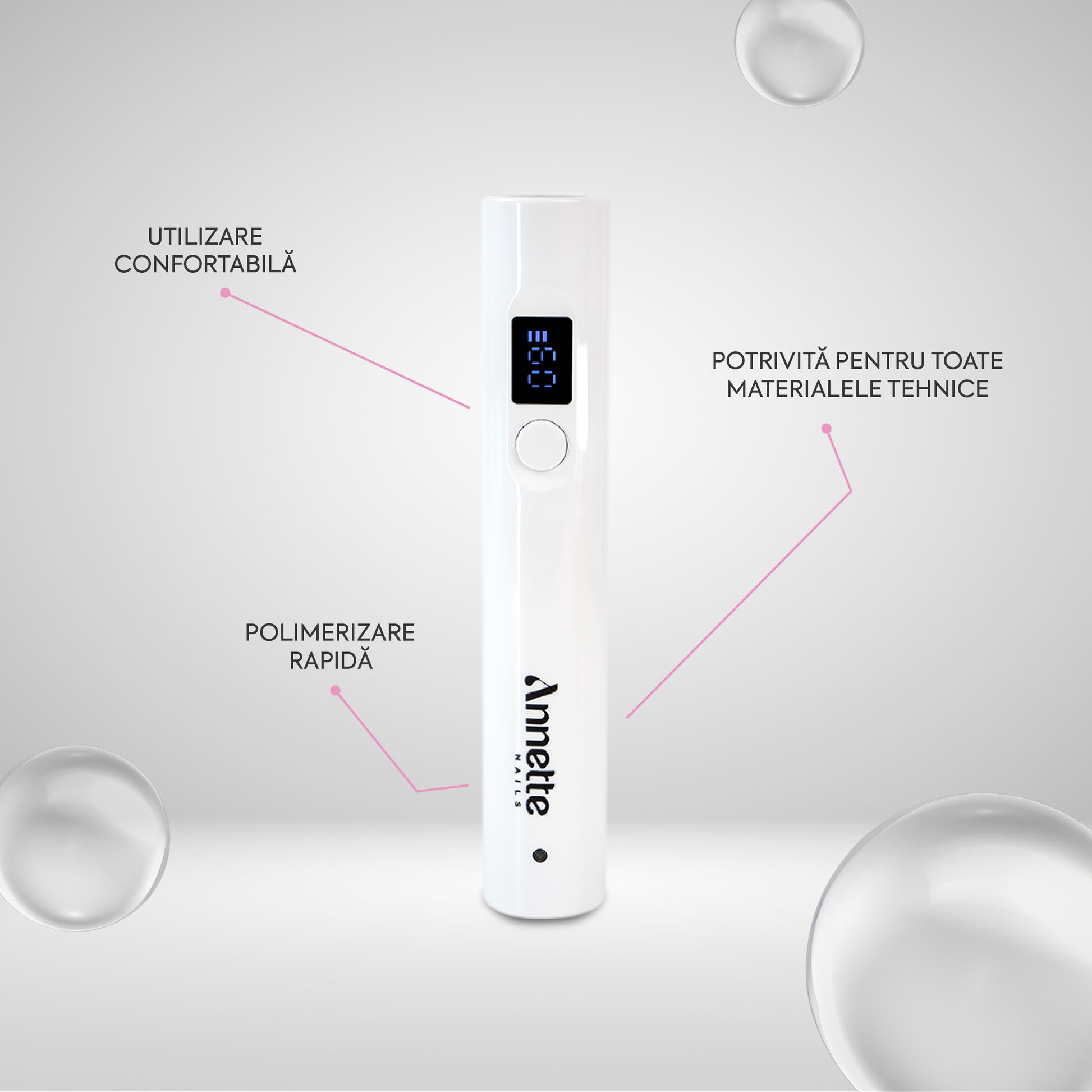 Lampa UV Mini Annette Nails cu Suport Detașabil este un instrument versatil și indispensabil pentru orice tehnician de manichiură. Potrivită pentru toate tipurile de polimeri, precum acrygel, polygel, gel, bază rubber, top coat, lampa este concepută pentru a oferi o polimerizare rapidă și uniformă.