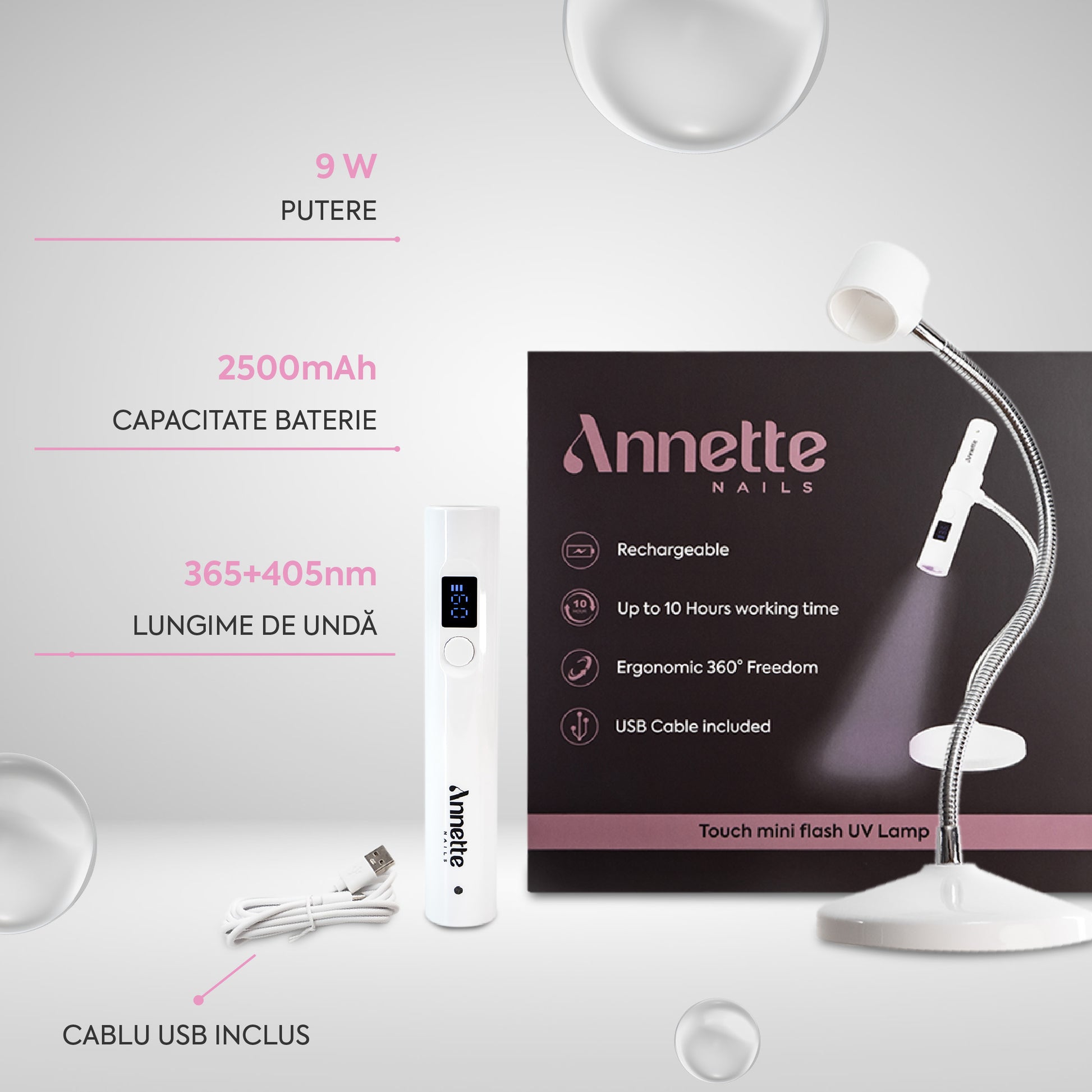 Lampa UV Mini Annette Nails cu Suport Detasabil, 9W