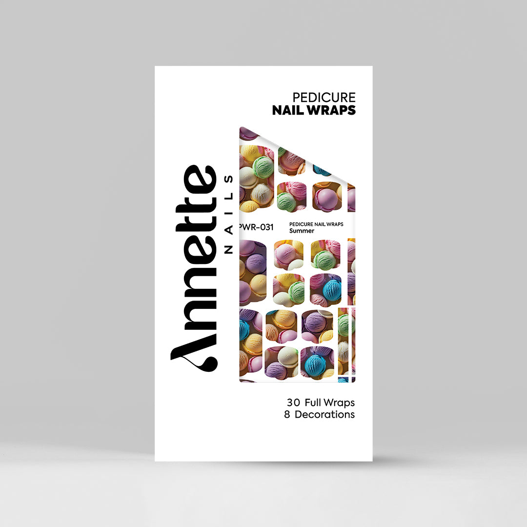 Pedicure Nail Wraps Annette Nails sunt stickere autoadezive pentru unghii, special concepute pentru crearea designurilor sofisticate pe unghii, indiferent de tehnica folosită: pedichiură clasică sau pedichiură semipermanentă. Wrapurile sunt una dintre cele mai populare tehnici pentru decorarea unghiilor și reprezintă o alternativă rapidă și eficientă la pedichiura cu oja semipermanentă. Acestea pot fi utilizate inclusiv pentru uz personal, oferind fiecărei femei posibilitatea de a-și realiza singură o pedichiură cu design deosebit și rezistență extinsă.
