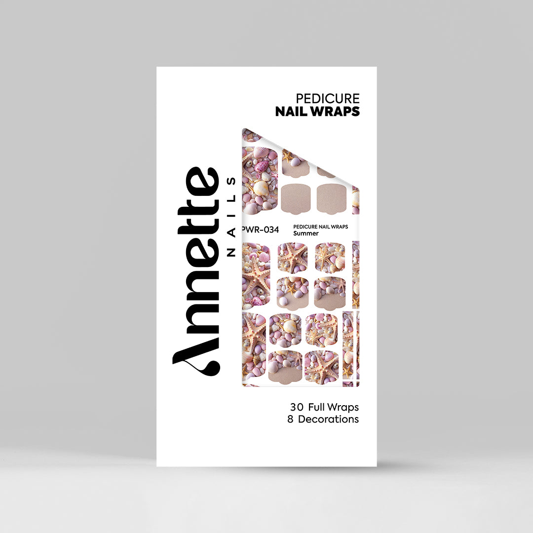 Pedicure Nail Wraps Annette Nails sunt stickere autoadezive pentru unghii, special concepute pentru crearea designurilor sofisticate pe unghii, indiferent de tehnica folosită: pedichiură clasică sau pedichiură semipermanentă. Wrapurile sunt una dintre cele mai populare tehnici pentru decorarea unghiilor și reprezintă o alternativă rapidă și eficientă la pedichiura cu oja semipermanentă. Acestea pot fi utilizate inclusiv pentru uz personal, oferind fiecărei femei posibilitatea de a-și realiza singură o pedichiură cu design deosebit și rezistență extinsă.