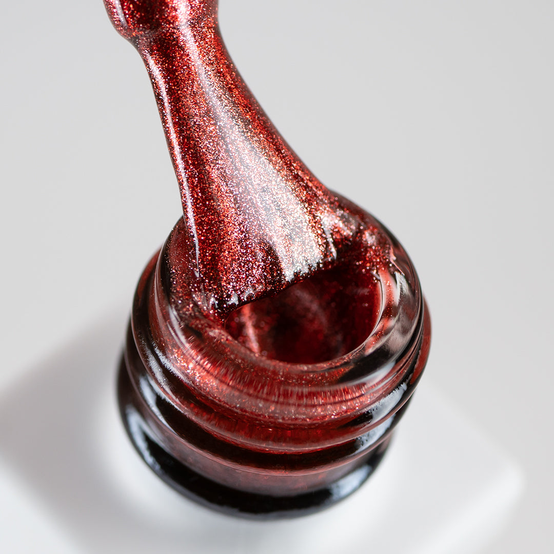 Formula inovatoare, îmbogățită cu microparticule magnetice fine, permite pigmentului să-și schimbe intensitatea în funcție de unghiul luminii, creând reflexii și detalii ce par să prindă viață la fiecare mișcare. După preferințe, oja poate fi aplicată într-un singur strat, pentru un finisaj fin sau peste culori intense, pentru o mai multă profunzime și textură vizuală.
