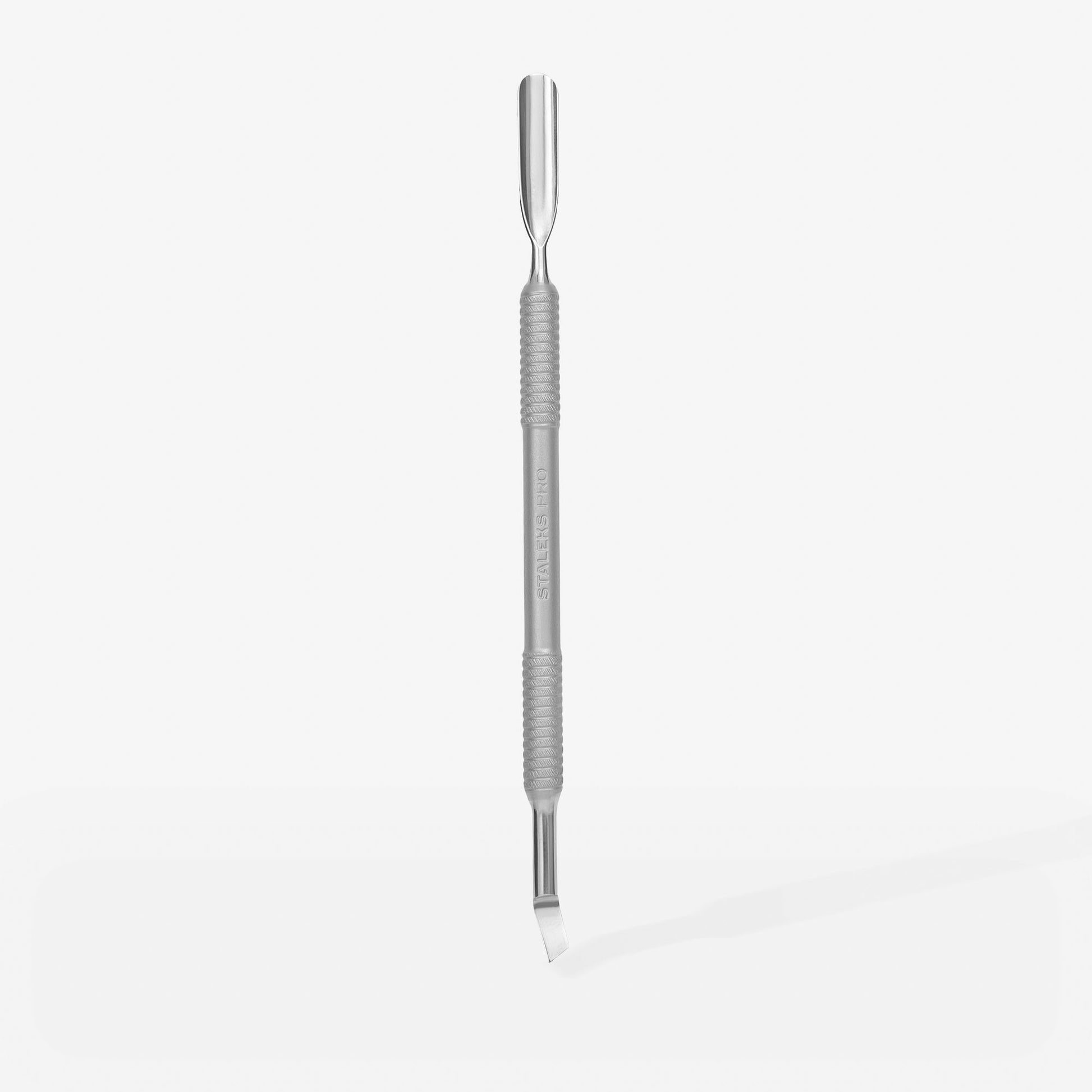 Pusherul este utilizat pentru a împinge cuticula și pentru a îndepărta resturile de cuticulă în timpul procedurii de pedichiură.Acesta are suprafață nichelată, mâner reiat, ce dispune de o formă ergonomică care facilitează uzul intens.
