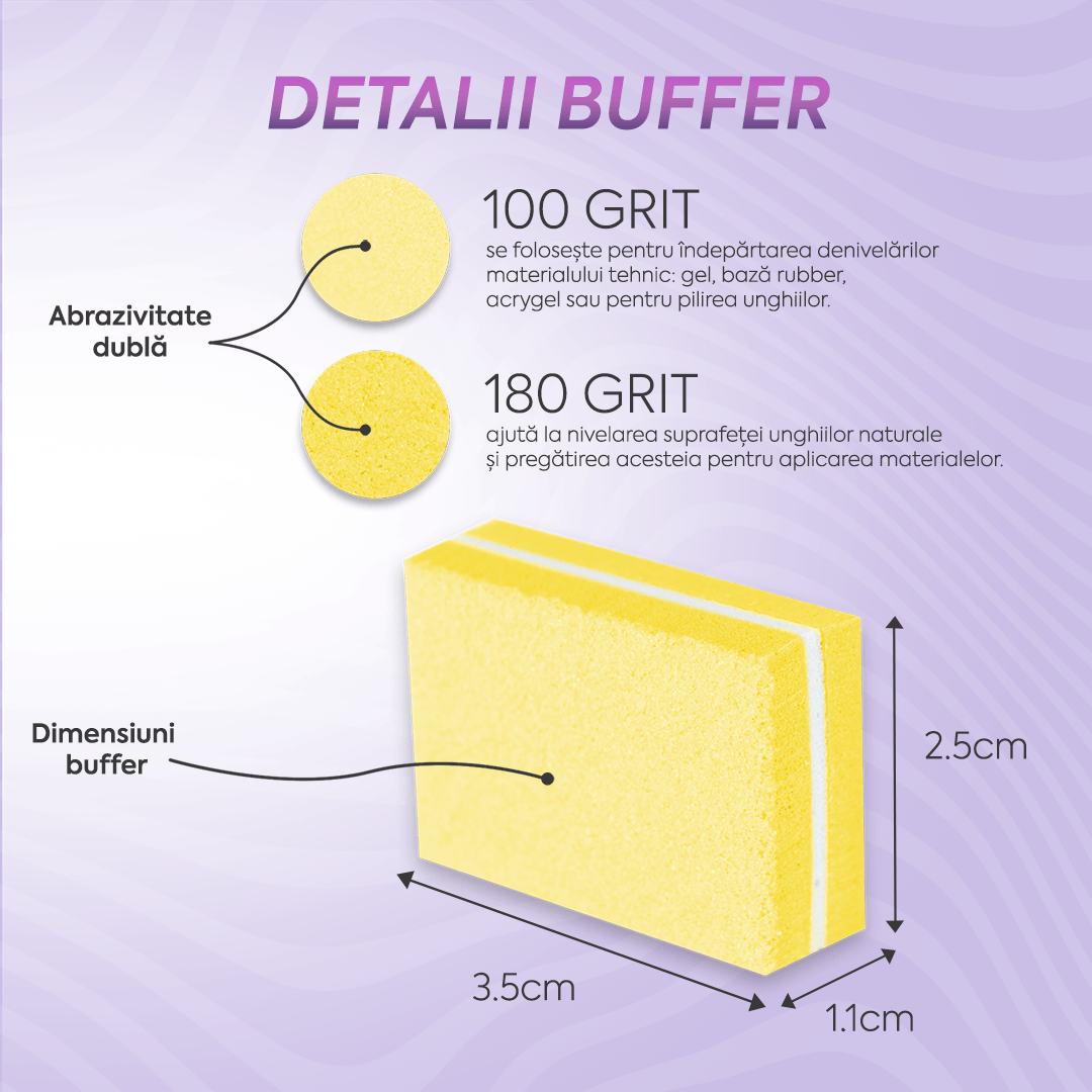 Abrazivitatea de 180 grit oferă o șlefuire fină, eliminând micile imperfecțiuni și pregătind unghia naturală pentru următorii pași.