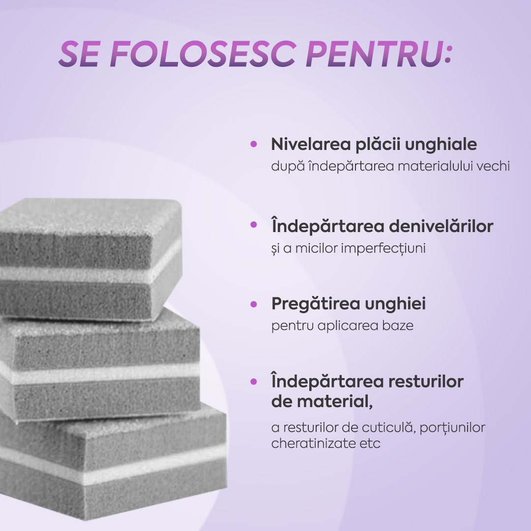 Abrazivitatea de 180 grit oferă o șlefuire fină, eliminând micile imperfecțiuni și pregătind unghia naturală pentru următorii pași.