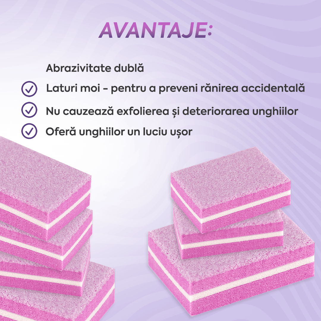 Prin achiziționarea setului de 50 de mini buffere Annette Nails, beneficiați de un stoc suficient pentru un timp îndelungat, optimizându-vă fluxul de lucru și economisind pe termen lung datorită prețului avantajos.