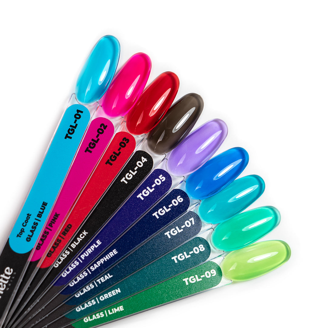 Top Coat-urile din colecția Glass nu au filtru UV, ceea ce le face ideale pentru acoperirea culorilor închise și pentru culorile neon. Lipsa filtrului UV elimină riscul petelor.