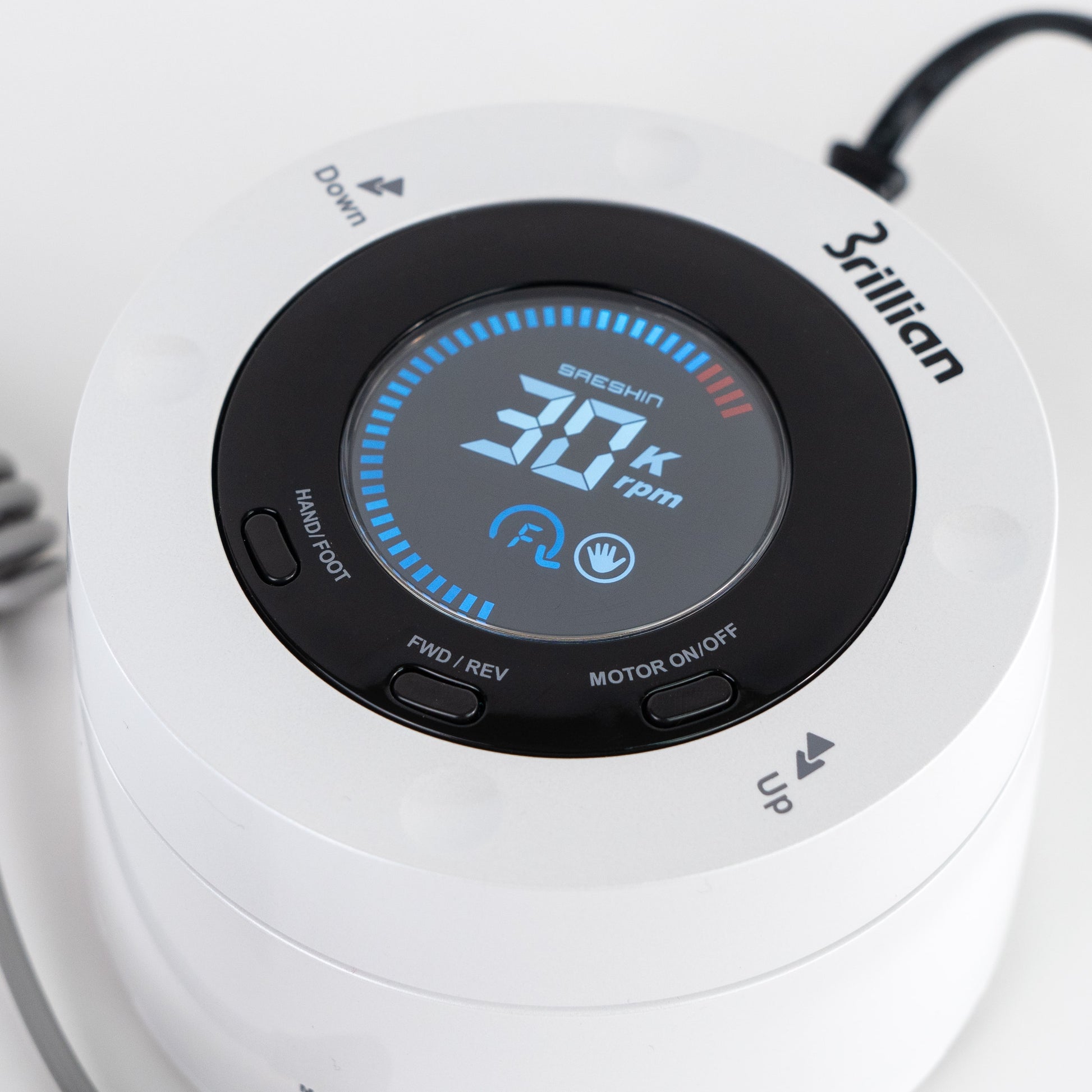Freza Brillian B100 alături de Mandrina H324 este cunoscută drept cea mai stylish freză de pe piață, dar în același timp, puterea acestui model nu trebuie neglijată. Aceasta, poate atinge o viteză de până la 30.000 de rotații pe minut. Este foarte versatilă în amplasare datorită formei sale și se remarcă prin lipsa greutății, ceea ce o face mai comodă în utilizare.
