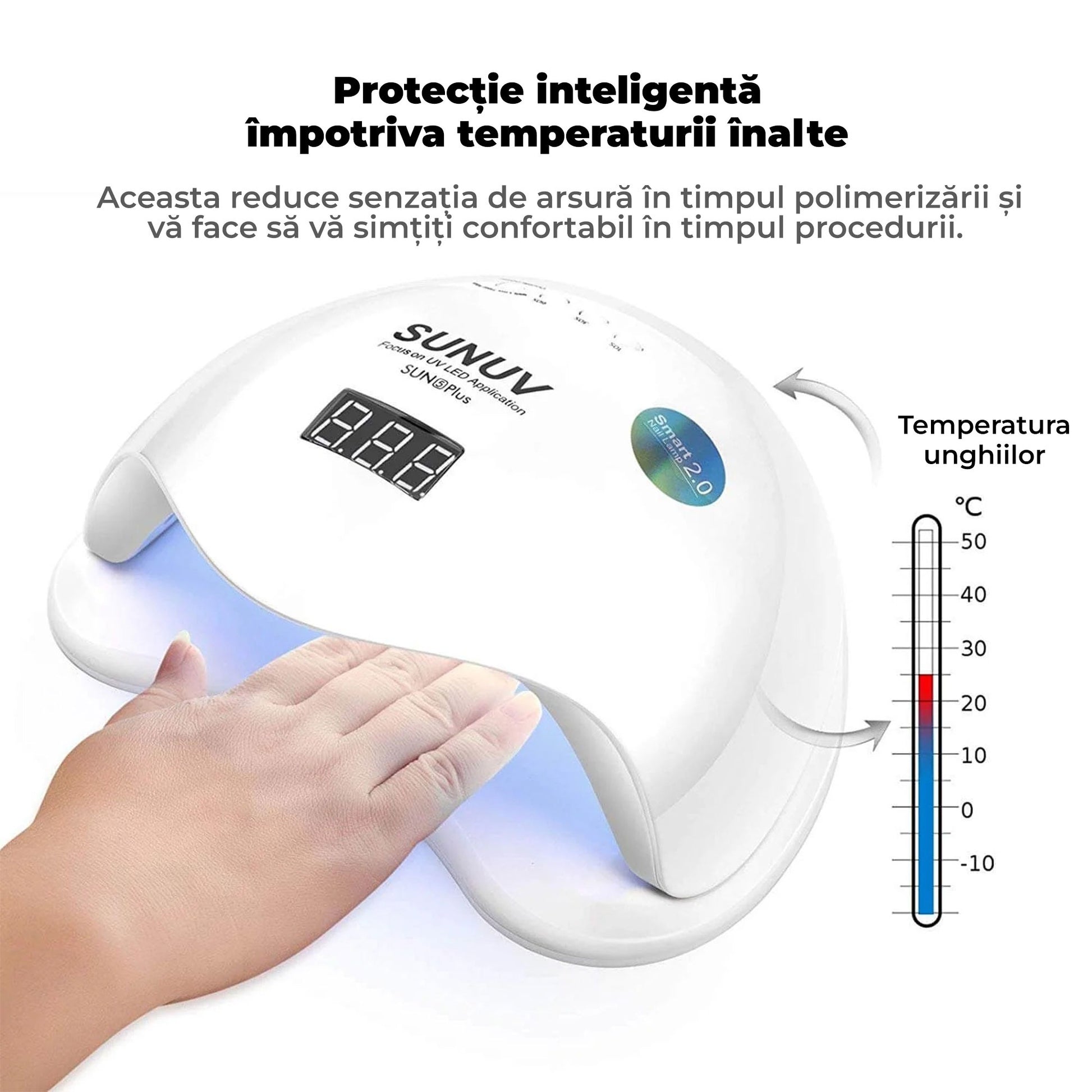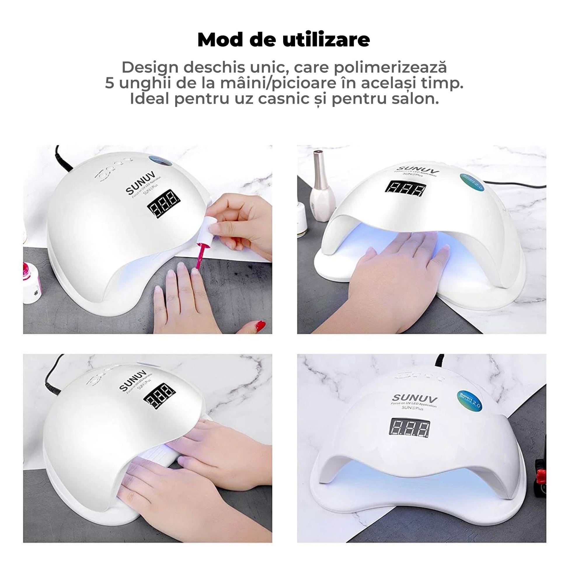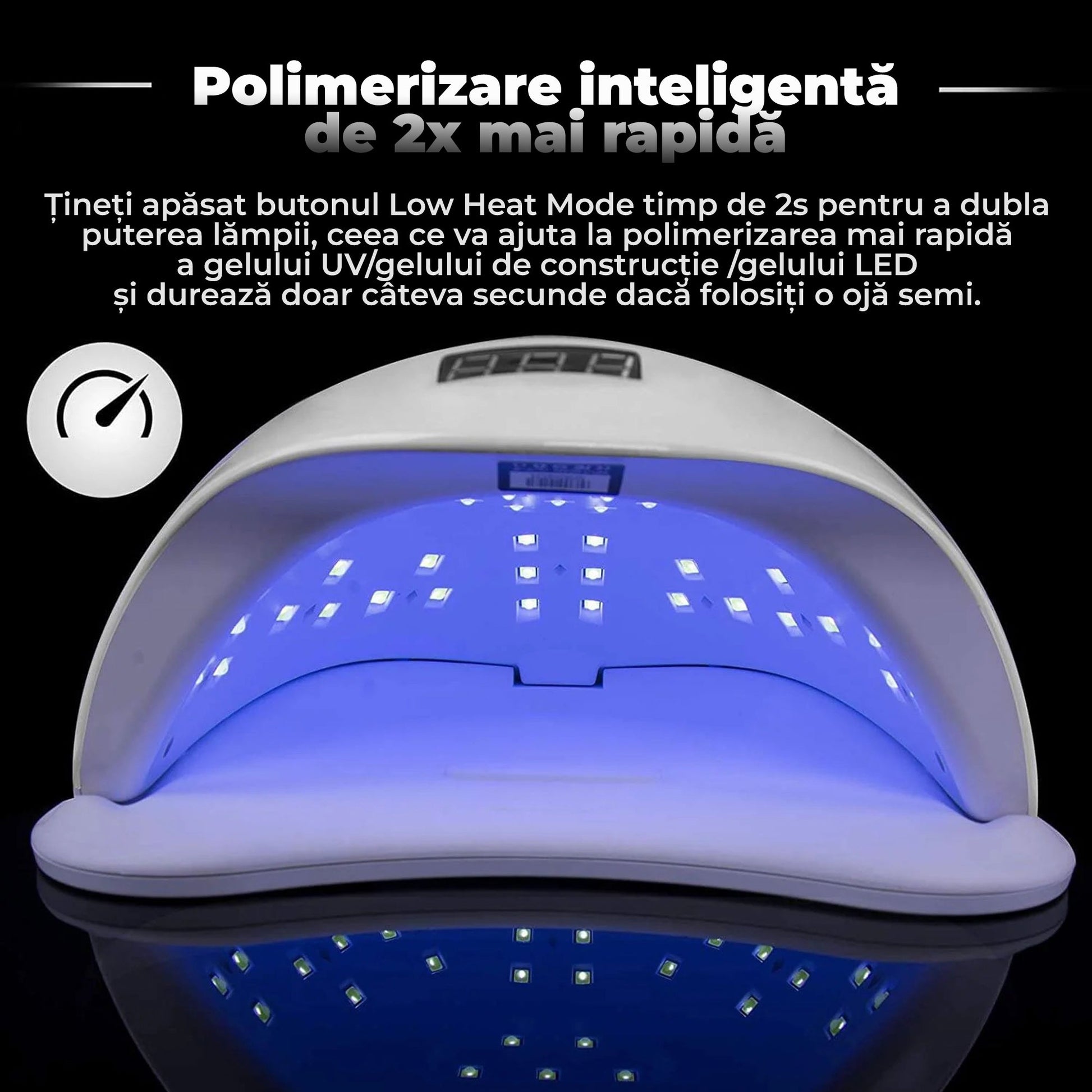 Tehnologia cu sursă dublă de lumină acoperă un spectru UV mai larg și este potrivită pentru polimerizarea ojelor semi, a gelurilor dure și a materialelor acrilice. Lampa este, de asemenea, potrivită pentru produse cu o consistență densă și groasă, pentru construcții complexe și pentru modele cu design acrilic.