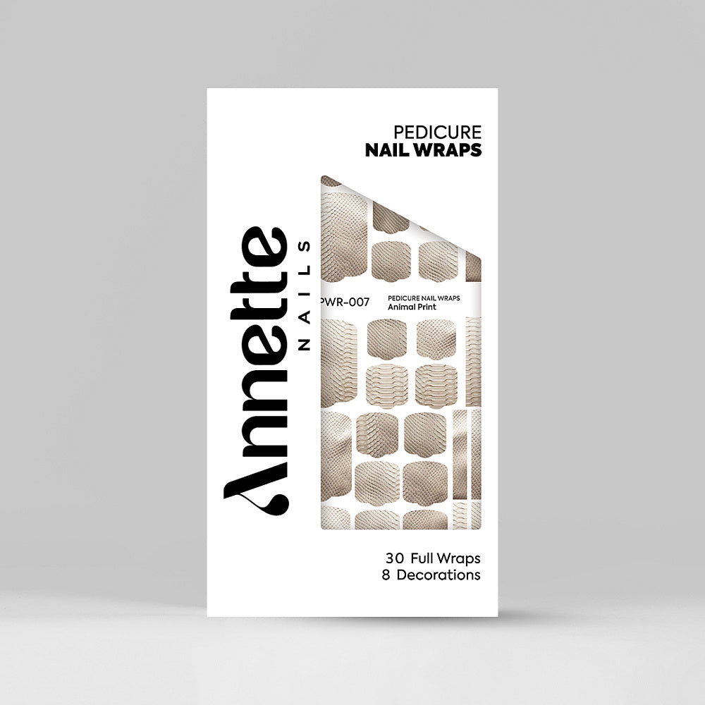 Pedicure Nail Wraps Annette Nails sunt stickere autoadezive pentru unghii, special concepute pentru crearea designurilor sofisticate pe unghii, indiferent de tehnica folosită: pedichiură clasică sau pedichiură semipermanentă. Wrapurile sunt una dintre cele mai populare tehnici pentru decorarea unghiilor și reprezintă o alternativă rapidă și eficientă la pedichiura cu oja semipermanentă. Acestea pot fi utilizate inclusiv pentru uz personal, oferind fiecărei femei posibilitatea de a-și realiza singură o pedichiură cu design deosebit și rezistență extinsă.