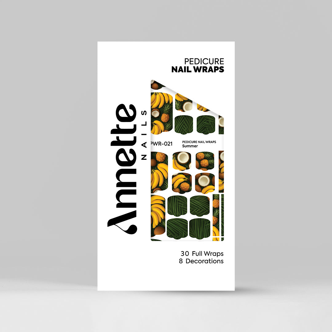 Pedicure Nail Wraps Annette Nails sunt stickere autoadezive pentru unghii, special concepute pentru crearea designurilor sofisticate pe unghii, indiferent de tehnica folosită: pedichiură clasică sau pedichiură semipermanentă. Wrapurile sunt una dintre cele mai populare tehnici pentru decorarea unghiilor și reprezintă o alternativă rapidă și eficientă la pedichiura cu oja semipermanentă. Acestea pot fi utilizate inclusiv pentru uz personal, oferind fiecărei femei posibilitatea de a-și realiza singură o pedichiură cu design deosebit și rezistență extinsă.