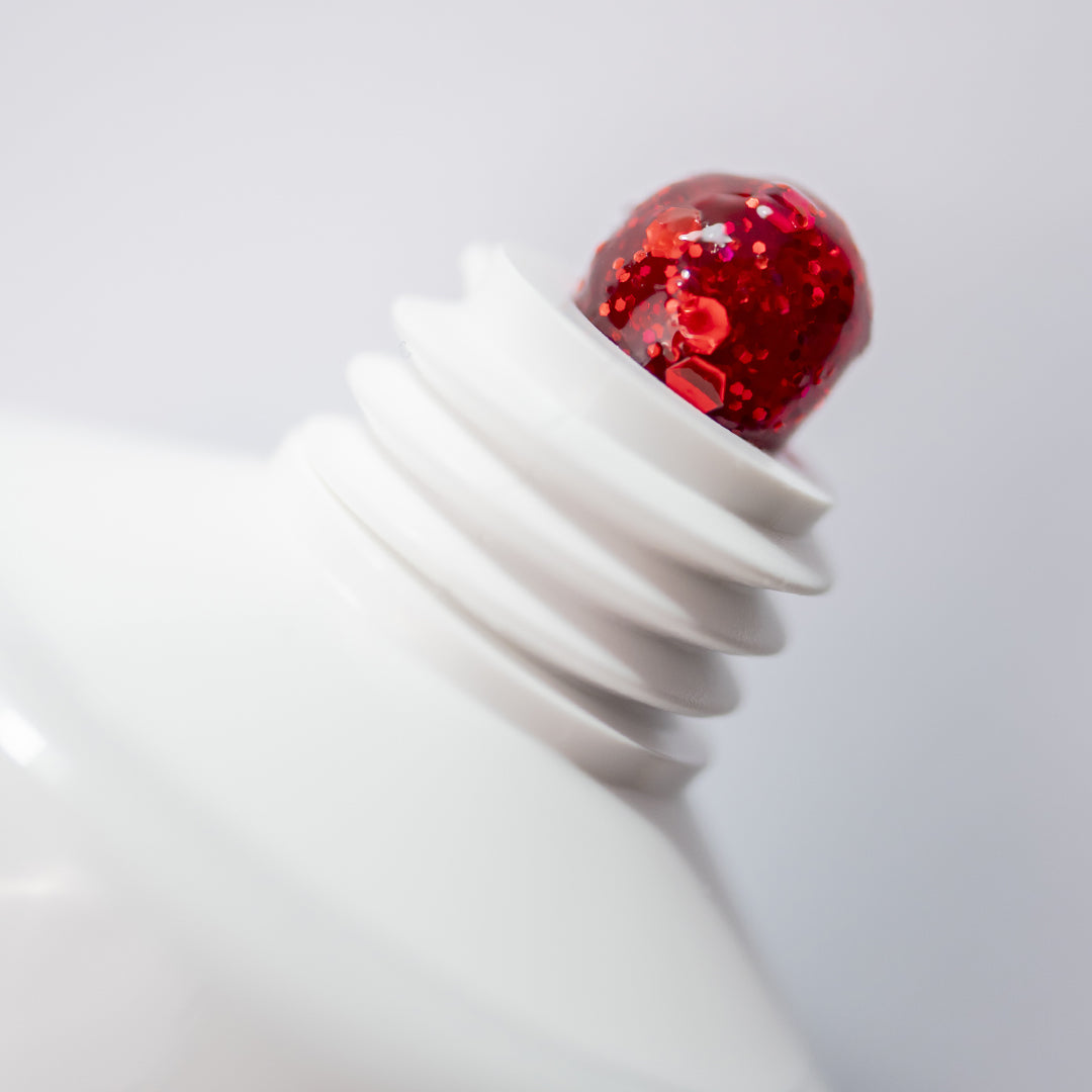 Glitter 57: Roșu intens, cu o concentrație mare de sclipici, potrivit pentru realizarea unui french de interior de efect.