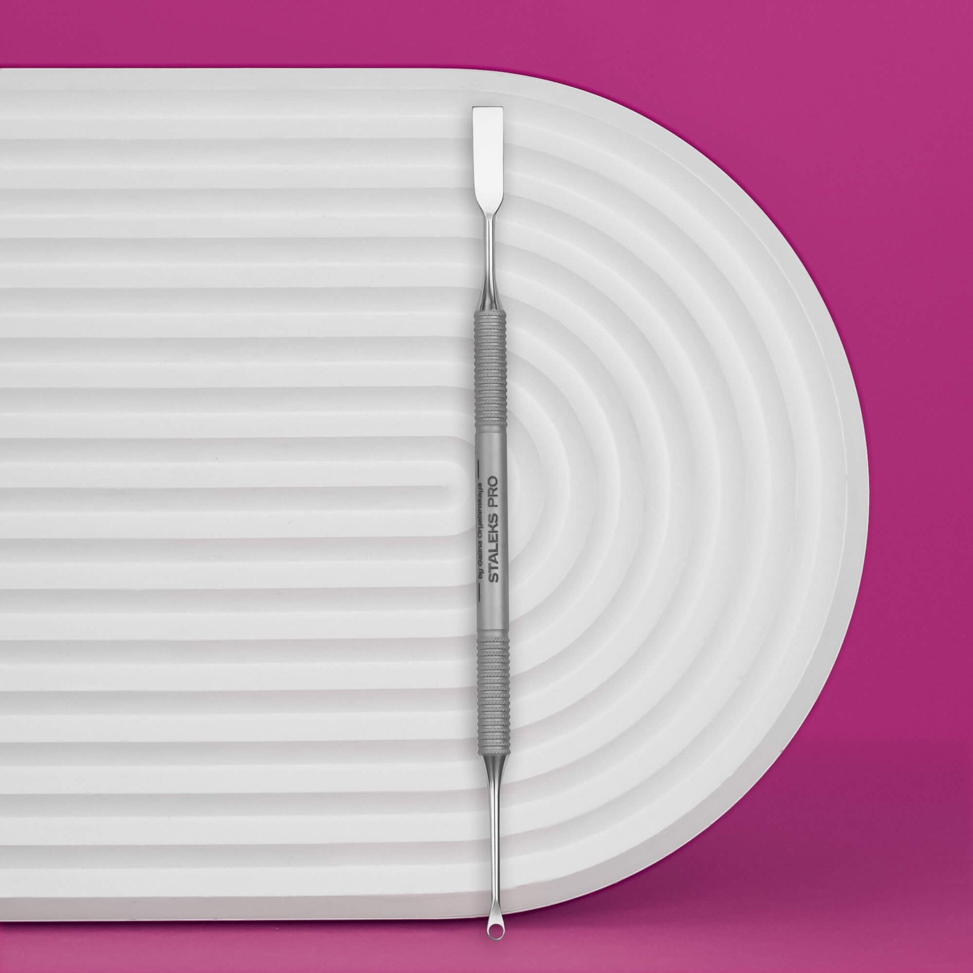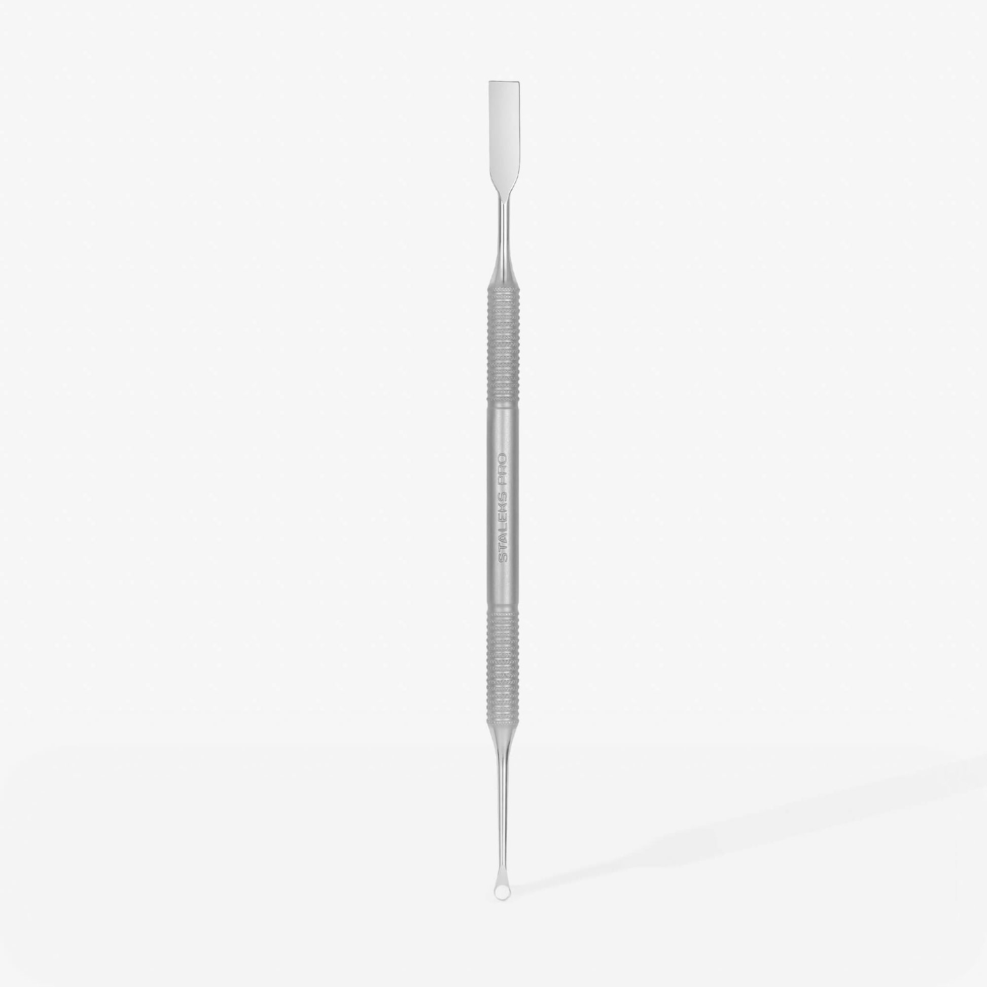 Pusherul este format din 2 capete diferite. Partea funcțională a „Pusherului rotunjit cu un capăt drept” este concepută pentru a ridica și împinge înapoi cuticula. Celălalt capăt, „securea” curăță resturile de cuticulă.Acesta are suprafață nichelată, mâner reiat, ce dispune de o formă ergonomică care facilitează uzul intens.
