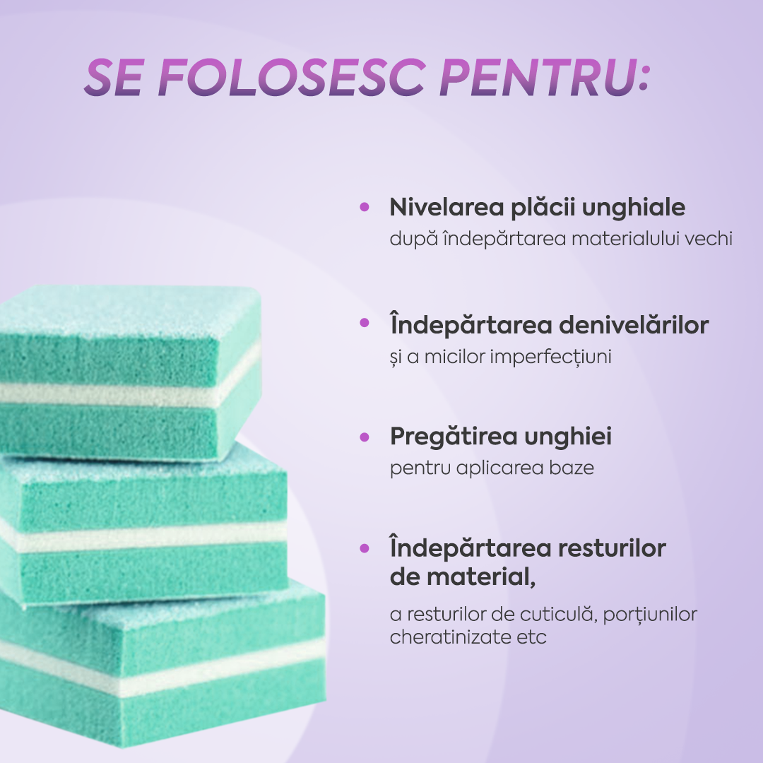 Abrazivitatea de 180 grit oferă o șlefuire fină, eliminând micile imperfecțiuni și pregătind unghia naturală pentru următorii pași.