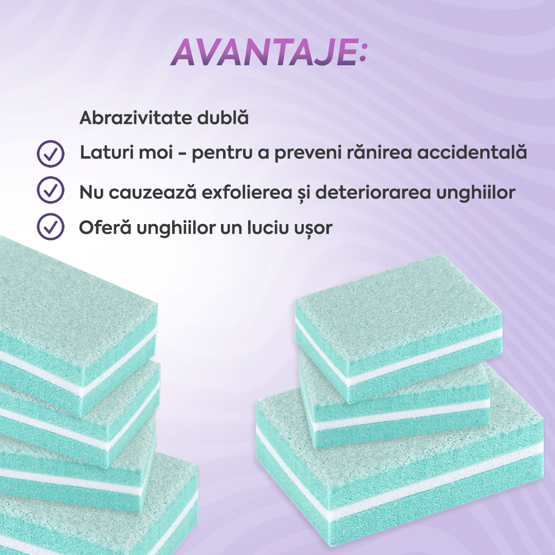 Prin achiziționarea setului de 50 de mini buffere Annette Nails, beneficiați de un stoc suficient pentru un timp îndelungat, optimizându-vă fluxul de lucru și economisind pe termen lung datorită prețului avantajos.