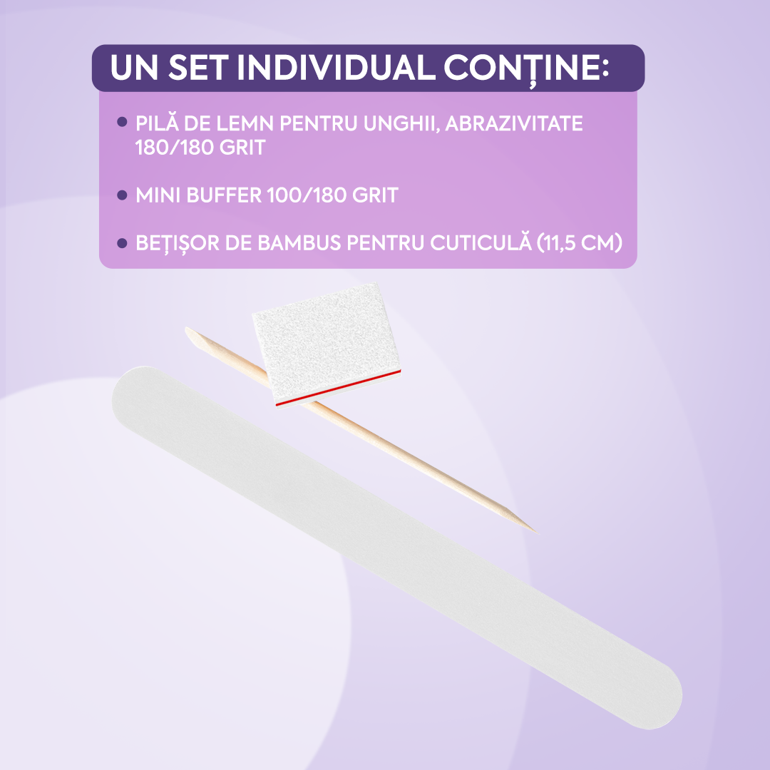 Acesta este un set de unică folosință pentru uzul în saloane, însă la domiciliu, pentru propria manichiură, se poate reutiliza.