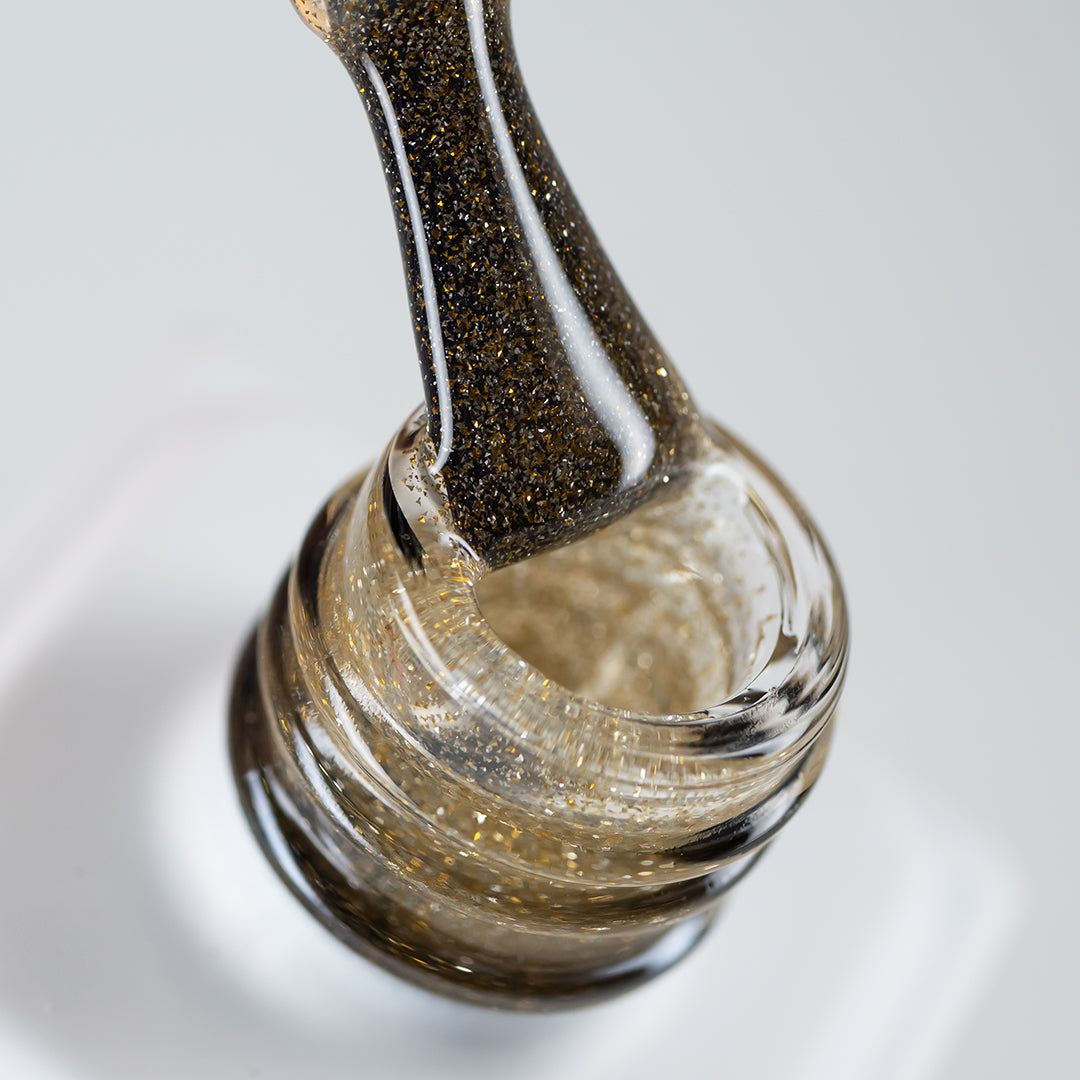 Reflective silver no wipe - este un top coat decorativ, fără strat de dispersie, ce conține particule de sclipici argintiu reflectorizant. Acestea oferă manichiurii o strălucire spectaculoasă când este expusă la o sursă puternică de lumină. Se poate aplica, atât peste nuanțele închise, cât și pe cele deschise sau peste french. Are o consistență medie și se autonivelează rapid în procesul aplicării. Își păstrează luciul pe toată durata purtării manichiurii.